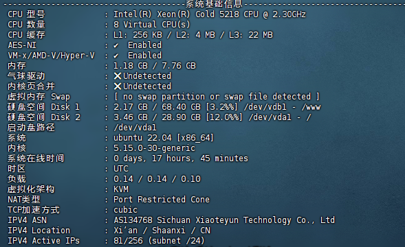 七速云最新推出的西安电信云服务器近日上线,搭载Intel Xeon Gold 5218处理器。我们将对其8核8G配置套餐进行了全面测试,以下是详细评测结果